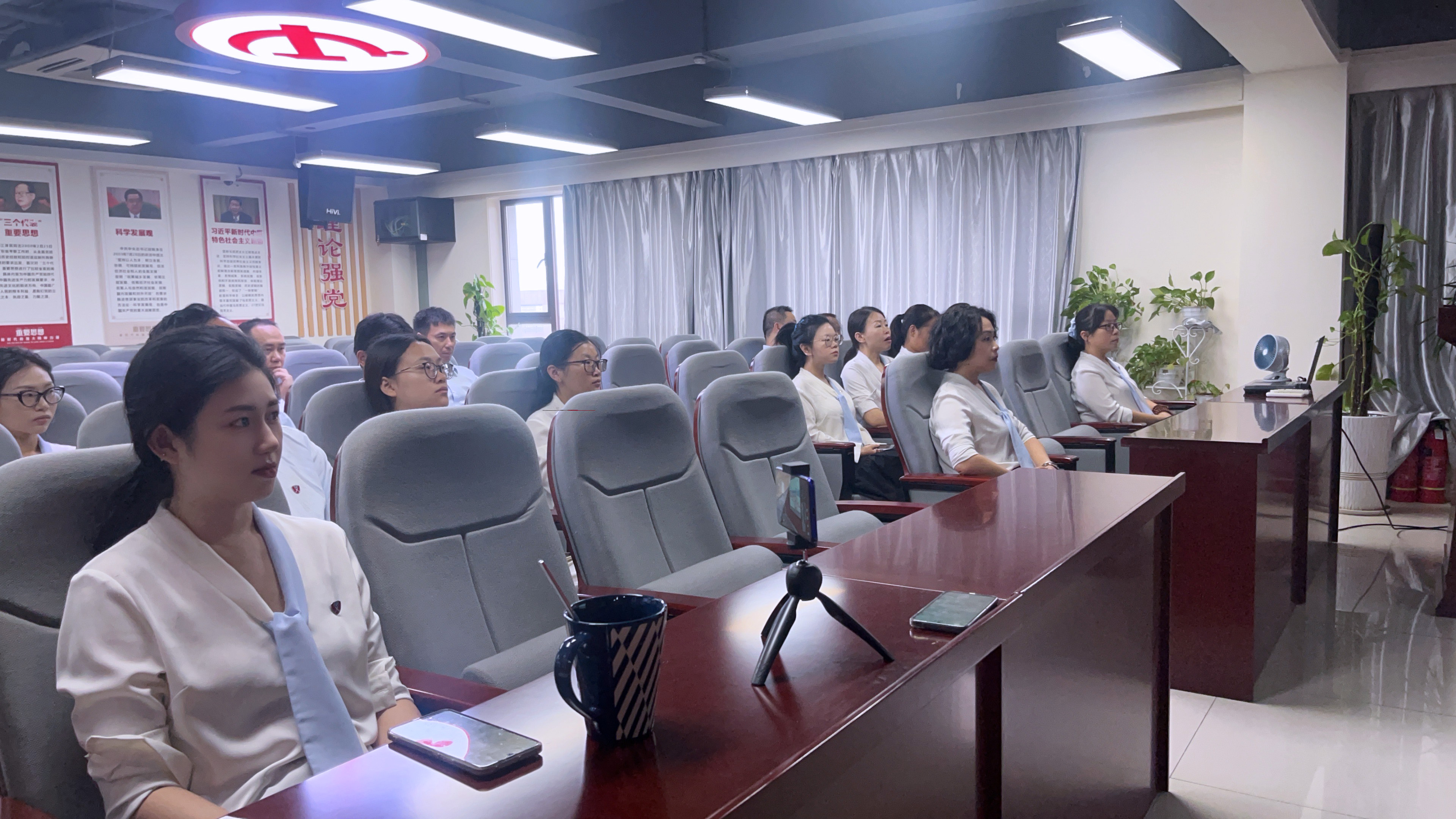 上午8:40,全体员工集合献唱国歌后,静待阅兵式开始。